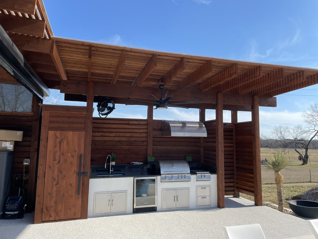 Discover our wide range of quality services, from Cedar Shade Structures, Outdoor Kitchens, Custom Decks, High-End Fences, Remodeling and Roofing